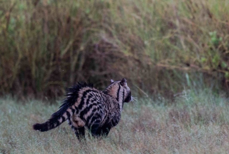 Il est nécessaire de sortir des sentiers battus traditionnels, d'aller fouiller un peu dans des zones éloignées des routes principales. Alors, vous aurez peut-être l'opportunité de croiser un caracal, une hyéne rayée, une civette africaine, un loup doré africain, un chacal à flancs rayés, des otocyons (renards à oreilles de chauve-souris), une mangouste d'Egypte ( Herpestes ichneumon ) ou même, oh, chance inouïe, d'apercevoir la silhouette furtive du Serval Noir.