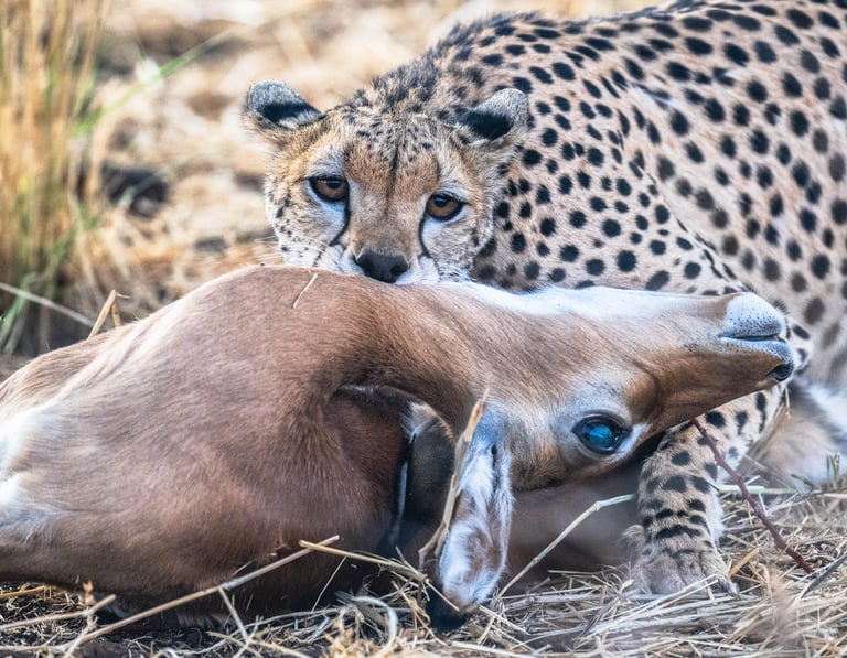 Au lever du jour et ses teintes bleutées, et en fin de journée, lorsque le soleil décline, colorant la savane de teintes mordorées, je parcours les pistes en quête de l'image ultime.