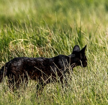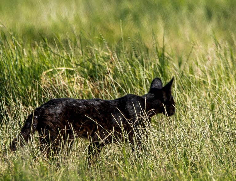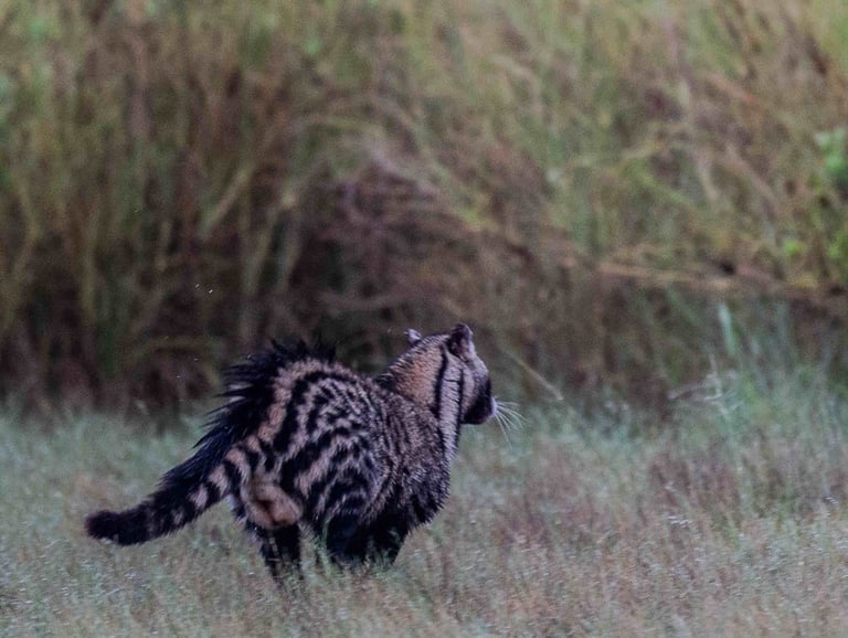 The observation will be shorter than expected because a black-backed jackal prowls in the area. Whatever. I have just experienced exceptional moments. I only saw this Serval Noir again on one other occasion, in poor conditions. I don't know what happened to the "Marsh Ghost". Some photographers have seen a black serval on other occasions. Was it the same? It doesn't matter. All that matters is the incredible emotion it gave me. Without being able to imagine it, it completely changed my life. Have a good trip, little Black Serval Cat.