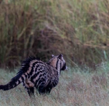 It was not possible for me to start a blog about the eight years I spent in Kenya without mentioning an event that completely changed my life. Let's go back to June 2021. In the middle of the Covid period, Kenya's parks are empty. It is almost impossible for tourists to come on safari. For us, living in Kenya, traffic is complicated, but we can still get to certain areas. Impossible to go to the Mara, but Amboseli is accessible. It was at this time that a rumor began to circulate among photographers and guides in Kenya.....A Black Serval would have been seen in Amboseli, and, unlike its congeners, it would not be too shy and relatively easy to find. As is often the case, the information had to be verified. Confirmation was given to me by a photographer friend who had taken photos of it and had given details of the location where it might be possible to find.